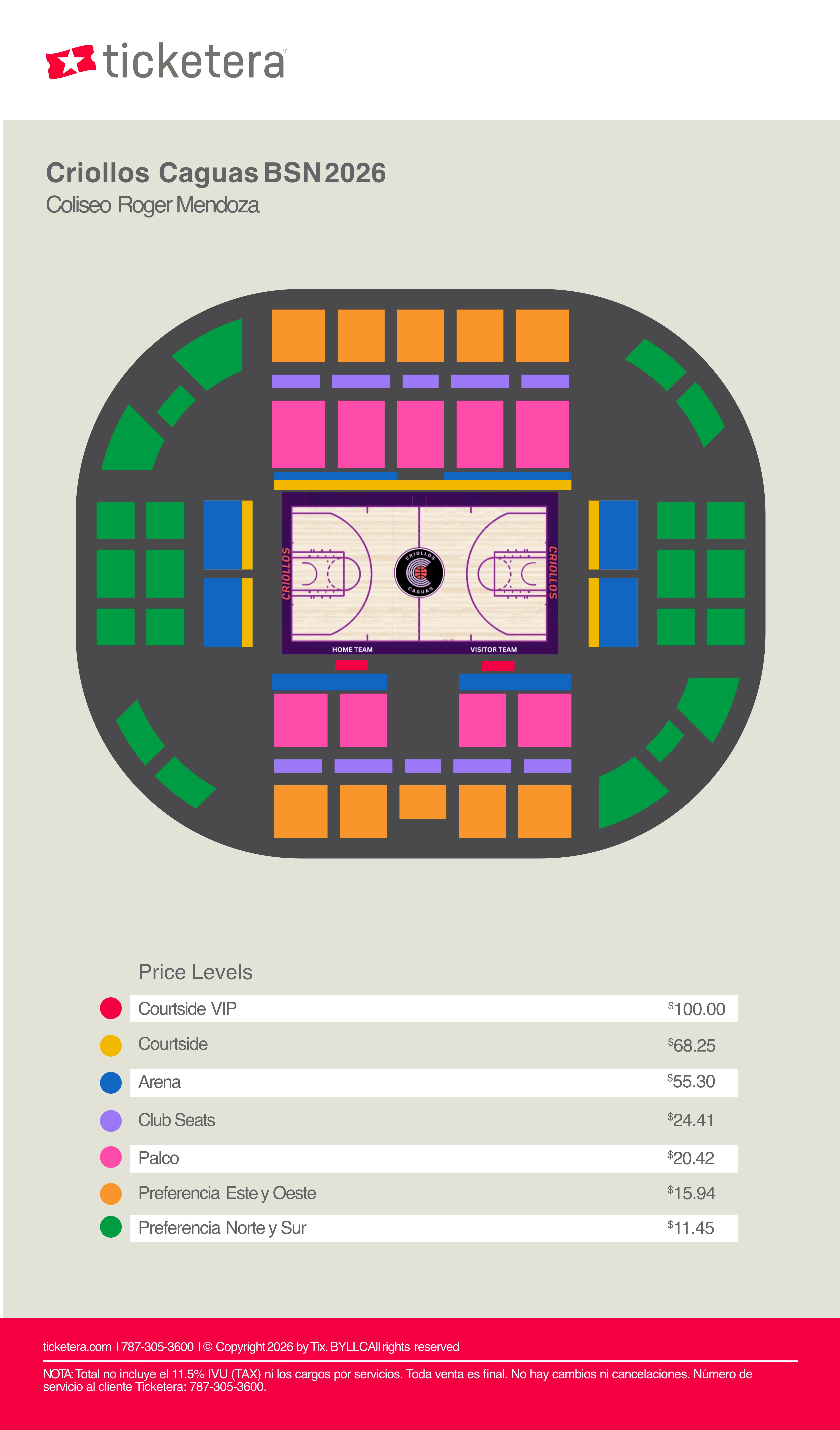 - Boleto con descuento de senior o discapacitados deberán ser adquiridos directamente en boletería o llamado al call center de Ticketera 787-305-3600.