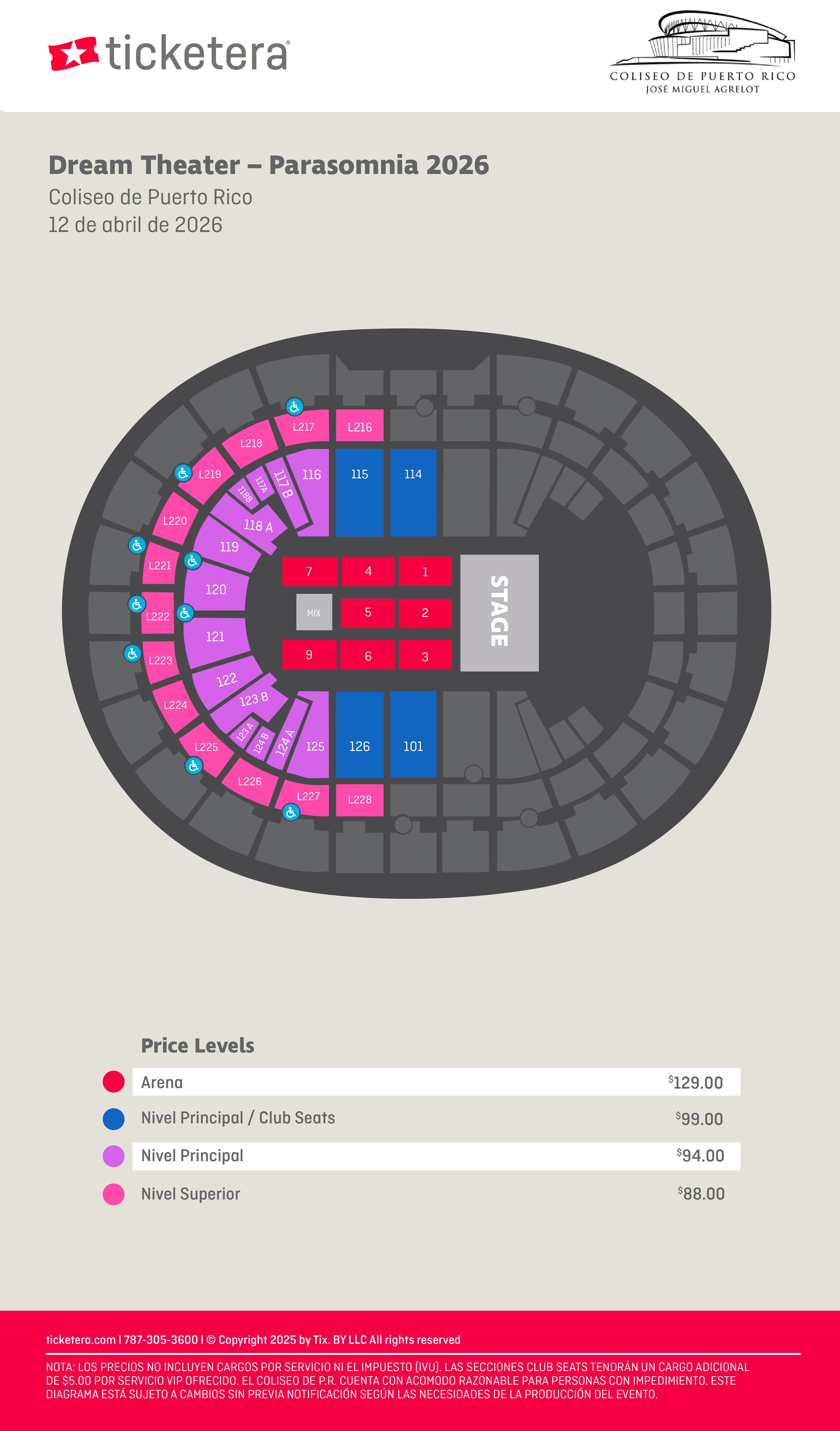 Al adquirir boletos en una sección ADA (WH), el comprador acepta presentar una tarjeta de impedido o carné válido el día del evento como requisito de entrada.