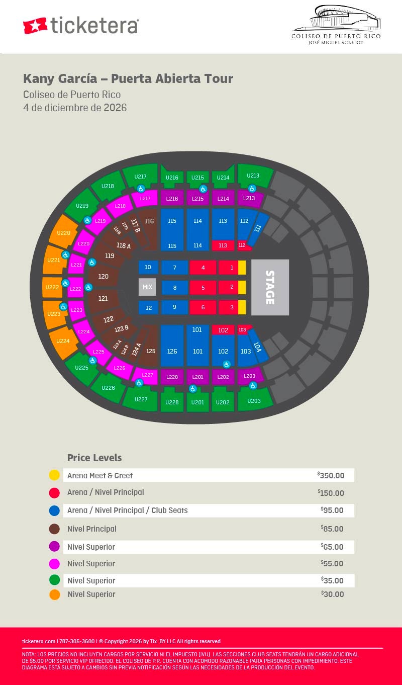 Al adquirir boletos en una sección ADA (WH), el comprador acepta presentar una tarjeta de impedido o carné válido el día del evento como requisito de entrada.