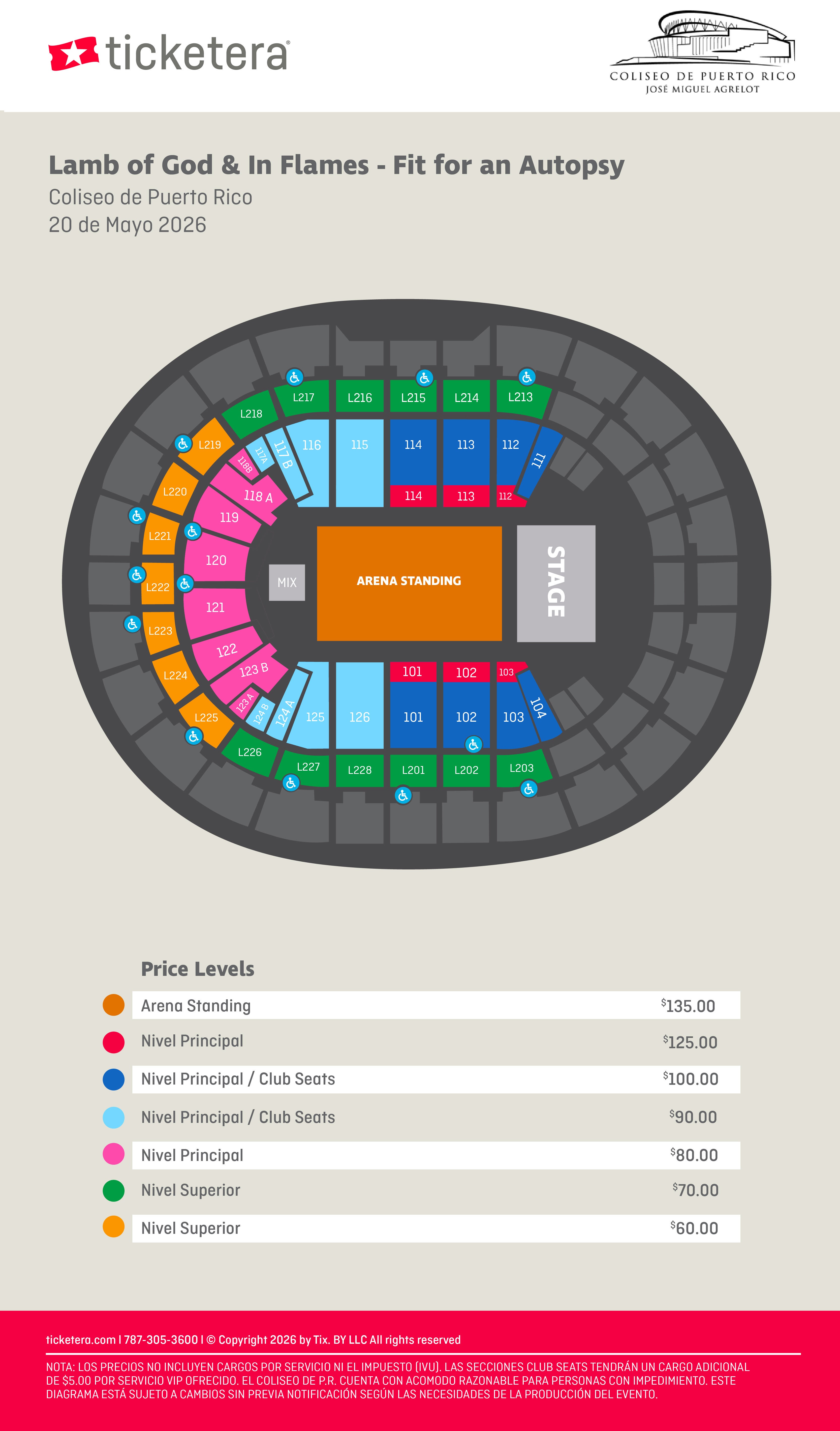 Al adquirir boletos en una sección ADA (WH), el comprador acepta presentar una tarjeta de impedido o carné válido el día del evento como requisito de entrada.