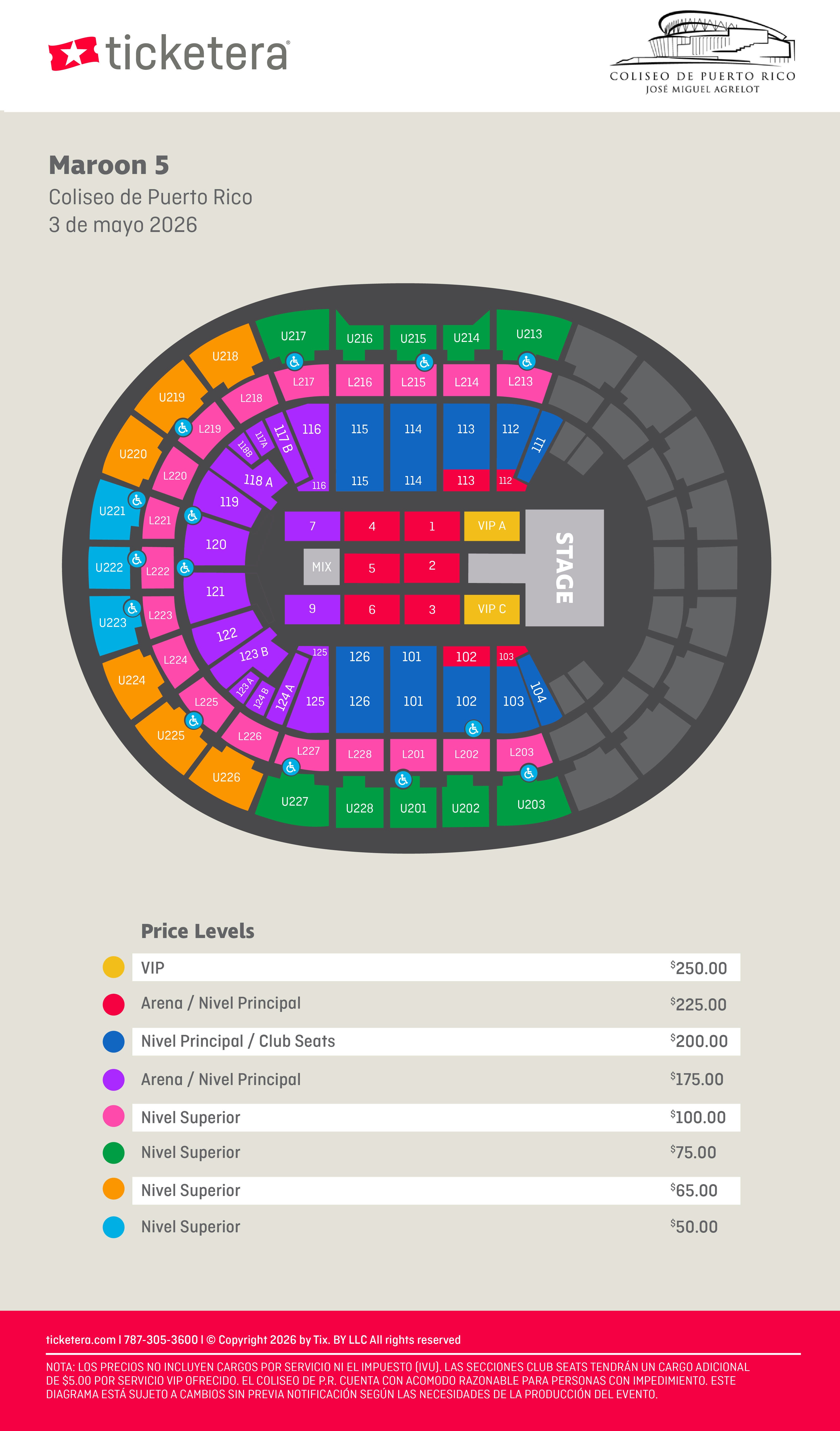 Al adquirir boletos en una sección ADA (WH), el comprador acepta presentar una tarjeta de impedido o carné válido el día del evento como requisito de entrada.
