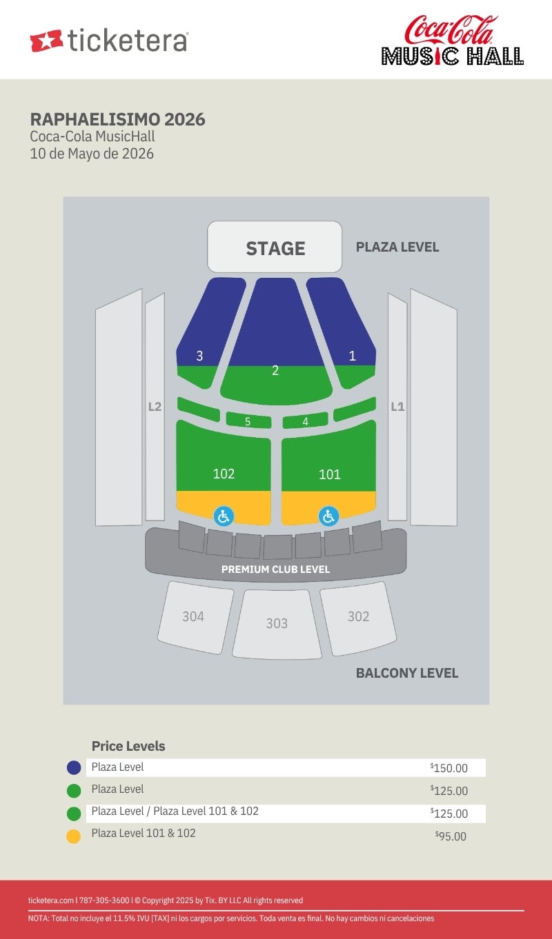 Para asistencia con la compra de boletos en el área ADA, favor de comunicarse con el Coca-Cola Music Hall al 787-425-0900. Al adquirir boletos en esta sección, el comprador acepta presentar una tarjeta de impedido o carné válido el día del evento como requisito de entrada.