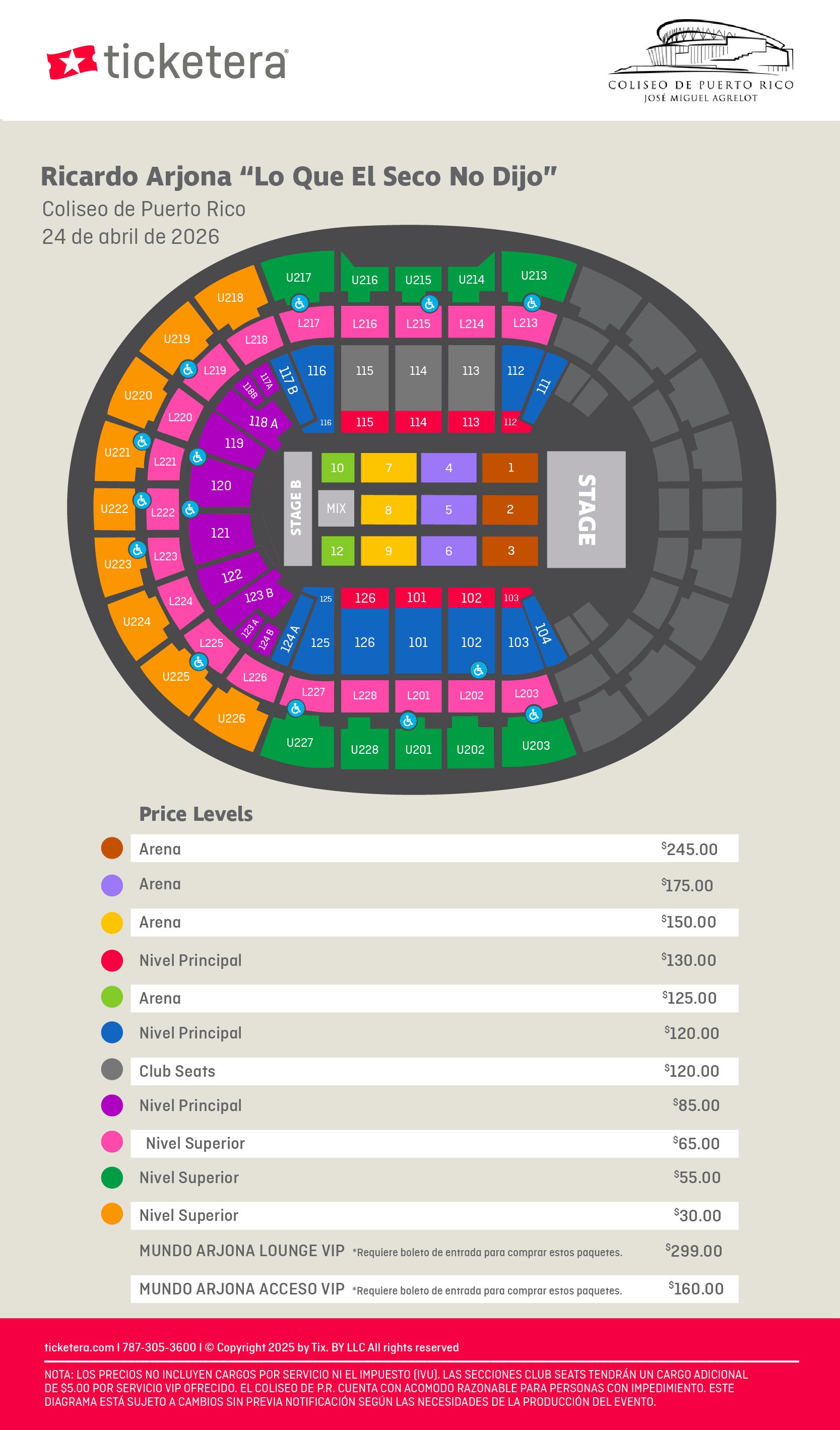 PAQUETE MUNDO ARJONA ACCESO VIP incluye: