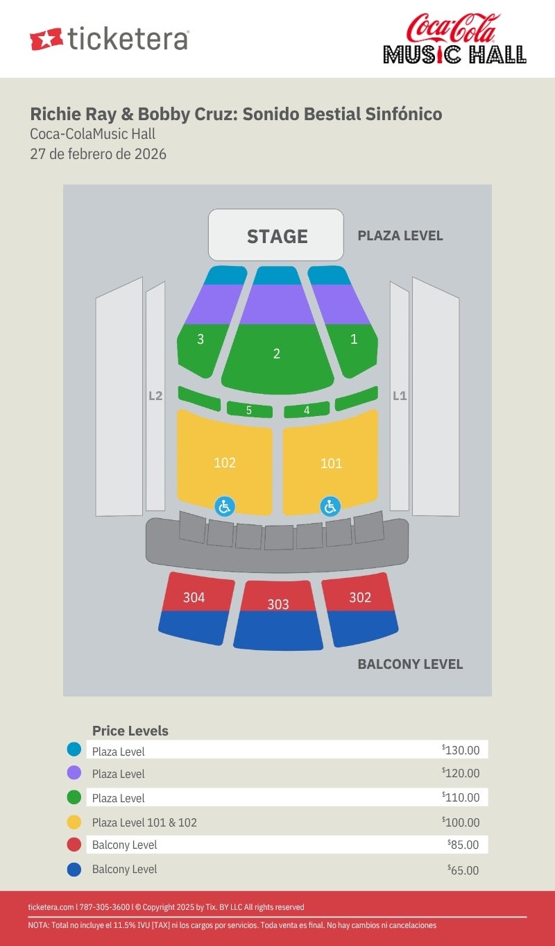Para asistencia con la compra de boletos en el área ADA, favor de comunicarse con el Coca-Cola Music Hall al 787-425-0900. Al adquirir boletos en esta sección, el comprador acepta presentar una tarjeta de impedido o carné válido el día del evento como requisito de entrada.